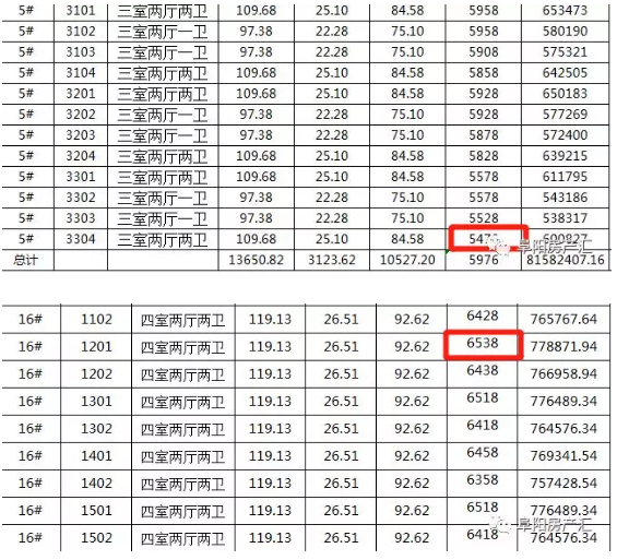 由下图可知,阜阳绿地·紫峰公馆此次备案房价最低单价5478元/㎡,最高备案单价仅6538元/㎡。