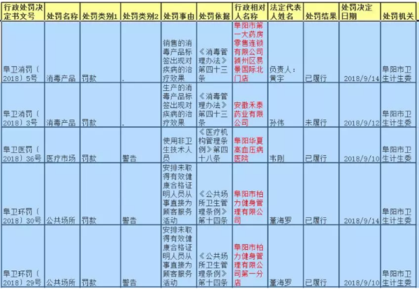 近日,阜阳市卫生计生委2018年9月中旬卫生行政处罚案件一览表公布,涉及阜阳多家医院和大家熟知的柏力健身等多地。具体信息如下↓其中,柏力健身管理有限公司因安排未取得有效健康合格证明人员直接为客户服务被