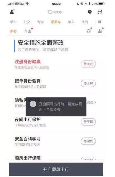 停业一周的滴滴顺风车于5月19日零时悄然恢复业务。不过,无论是司机还是乘客,必须完成以下6项措施后才可使用顺风车业务:注册身份验真接单身份验真隐私保护设置夜间出行保护安全保障学习顺风车出行保障不过,记